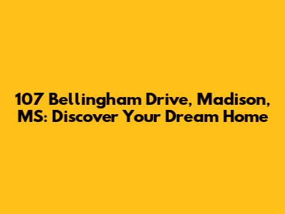 Hey guys! Are you looking for the perfect spot in Madison, Mississippi? Let's dive deep into everything you need to know about 107 Bellingham Drive! This place isn't just an address; it's a potential home filled with possibilities. We're going to explore every nook and cranny, ensuring you have all the details to make an informed decision. Trust me; this is more than just a house; it's a lifestyle!