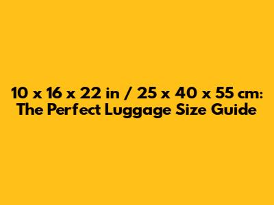 So, there you have it! A 10 x 16 x 22 inch (25 x 40 x 55 cm) suitcase is a fantastic choice for travelers who want a balance of space and convenience. It's generally carry-on compliant, offers enough room for a short to medium trip, and can help you avoid those pesky baggage fees. Just remember to double-check airline policies, pack efficiently, and choose a suitcase that meets your needs. Happy travels, guys!