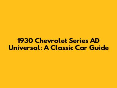 1930 Chevrolet Series AD Universal: A Classic Car Guide