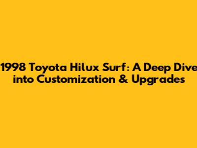 Hey car enthusiasts! Ever dreamed of taking your ride to the next level? Well, today, we're diving headfirst into the world of the 1998 Toyota Hilux Surf modifications. This SUV, also known as the 4Runner in some markets, is a legendary off-roader, and with the right tweaks, it can become an absolute beast. We're talking about everything from beefing up the suspension to adding some serious style. Let's get started, guys!
