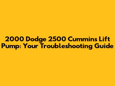 2000 Dodge 2500 Cummins Lift Pump: Troubles & Solutions
