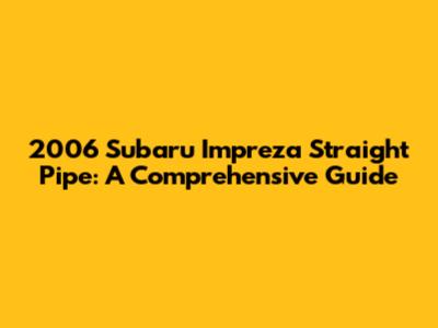 2006 Subaru Impreza Straight Pipe: Everything You Need To Know