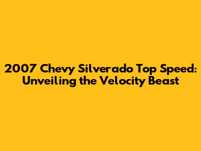 2007 Chevy Silverado: How Fast Can It Really Go?
