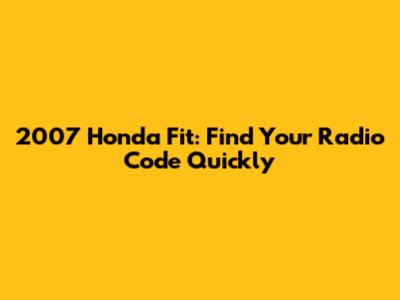 2007 Honda Fit: Find Your Radio Code Quickly