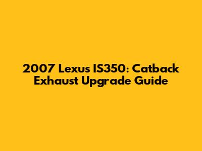 2007 Lexus IS350: Catback Exhaust Upgrade Guide