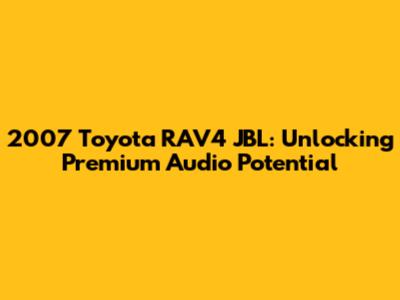 2007 Toyota RAV4 JBL: Unlocking Premium Audio Potential