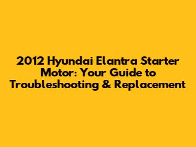 2012 Hyundai Elantra Starter Motor: Troubleshooting & Replacement