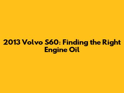Hey there, car enthusiasts! So, you're here because you're wondering about the 2013 Volvo S60 engine oil type, right? Well, you've come to the right place. Keeping your Volvo's engine happy and healthy is super important, and choosing the correct engine oil is a big part of that. Think of it like this: your engine is a complex machine with a lot of moving parts, and the engine oil is the lifeblood that keeps everything running smoothly. Using the wrong oil can lead to all sorts of problems down the road, from reduced performance to serious engine damage. But don't worry, we're going to break down everything you need to know about picking the perfect oil for your 2013 Volvo S60. We'll cover the specific oil types recommended by Volvo, why those recommendations matter, and where you can go to get the right stuff. Let's dive in and make sure your S60 stays in tip-top shape!