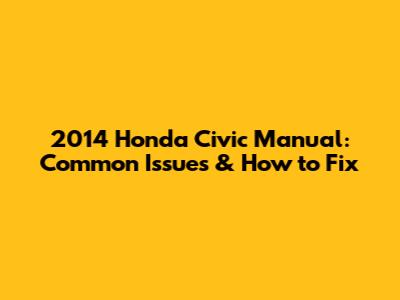 2014 Honda Civic Manual: Common Issues & How To Fix