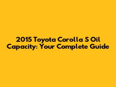 2015 Toyota Corolla S Oil Capacity: Everything You Need To Know