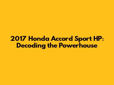 2017 Honda Accord Sport HP: What You Need To Know