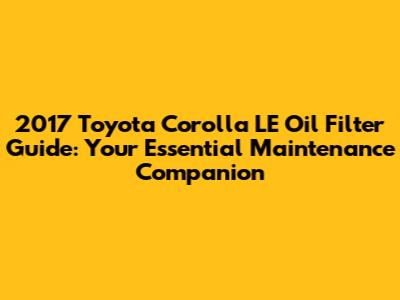 2017 Toyota Corolla LE Oil Filter Guide