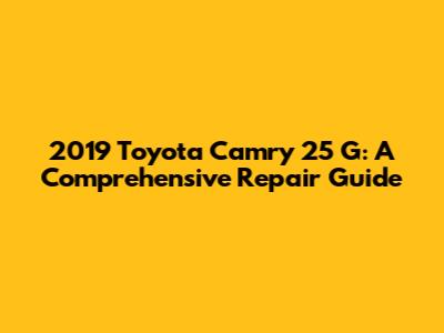 2019 Toyota Camry 25 G: A Comprehensive Repair Guide