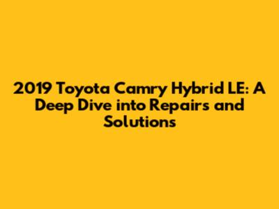 Common Issues and Repair Solutions for the 2019 Camry Hybrid LE