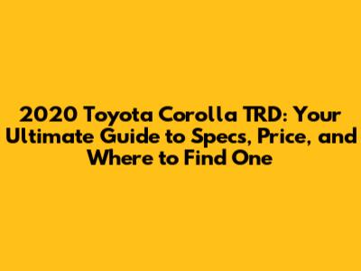 2020 Toyota Corolla TRD Specs: What You Need to Know