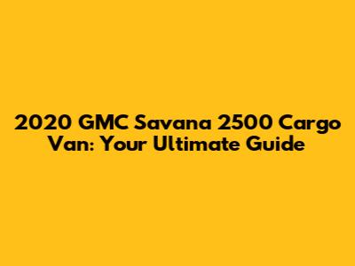 2020 GMC Savana 2500 Cargo Van: A Comprehensive Guide