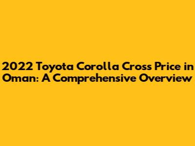 Hey guys! If you're eyeing a new ride in Oman and the 2022 Toyota Corolla Cross has caught your attention, you're in the right place. We're diving deep into everything you need to know about the 2022 Toyota Corolla Cross price in Oman, its features, and what makes it a solid choice in the Omani market. This guide is designed to give you a clear picture, helping you make an informed decision. So, buckle up, and let's explore!