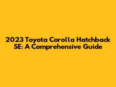 2023 Toyota Corolla Hatchback SE: A Comprehensive Guide