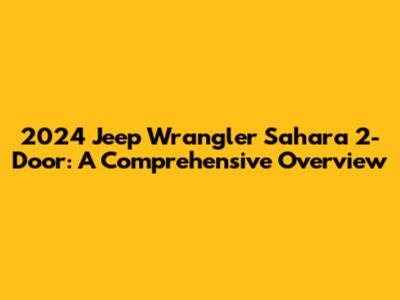 2024 Jeep Wrangler Sahara 2-Door: A Comprehensive Overview
