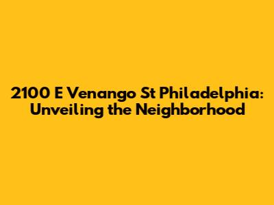 2100 E Venango St Philadelphia: A Neighborhood Deep Dive