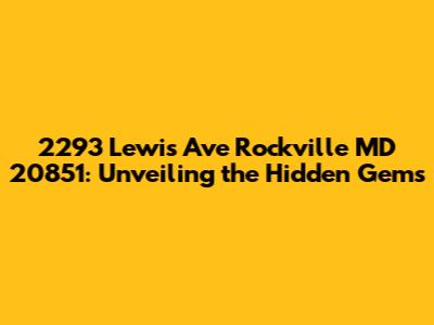 Hey there, folks! Ever found yourself wondering about 2293 Lewis Ave Rockville MD 20851? Well, buckle up, because we're about to embark on a virtual tour of this specific address in the heart of Rockville, Maryland. This isn't just a random set of numbers; it's a gateway to a specific location with its own unique story, potential, and significance within the local community. We'll explore the area, touch on the types of properties usually found here, talk about local amenities, and offer a peek into what makes this address a notable point on the map. Let's dive in and uncover the details that make 2293 Lewis Ave Rockville MD 20851 a place of interest.