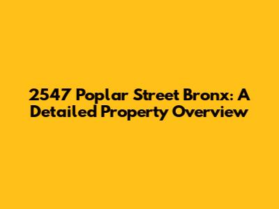 2547 Poplar Street Bronx: A Detailed Property Overview
