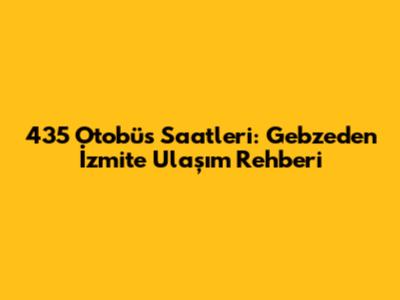 • Cevap: 435 otobüs saatlerini Kocaeli Büyükşehir Belediyesi'nin web sitesinden, ilgili ulaşım şirketinin uygulamasından veya otobüs duraklarındaki panolardan öğrenebilirsiniz. Ayrıca, İzmit Otogarı veya Gebze Garı gibi terminallerdeki danışma noktalarından da bilgi alabilirsiniz.