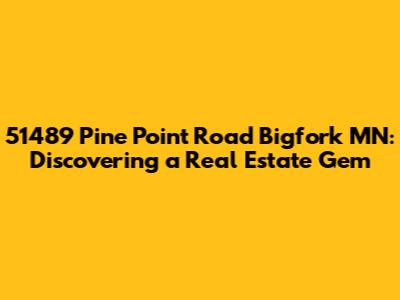 Hey guys! Ever dreamt of stumbling upon a real estate treasure? Well, let’s dive into the captivating world of 51489 Pine Point Road in the scenic Bigfork, Minnesota. This isn’t just an address; it's an invitation to a lifestyle steeped in natural beauty and tranquility. When you're looking for that perfect escape, the location is everything. Bigfork, with its charming small-town vibe and stunning lakeside setting, provides an idyllic backdrop for this remarkable property. We're talking about a place where the air is crisp, the views are breathtaking, and the community is welcoming. Imagine waking up to the gentle sounds of nature, spending your days exploring the great outdoors, and evenings relaxing by the water. That's the promise of Pine Point Road. But it's not just about the location, is it? A truly special property needs to offer something unique, something that sets it apart from the crowd. Whether it's the architectural design, the luxurious amenities, or the sheer size and scope of the land, the details matter. So, as we delve deeper into what 51489 Pine Point Road has to offer, we'll be looking at all these aspects and more. Get ready to uncover the hidden gems and discover why this address could be your dream come true. So buckle up, grab a coffee, and let’s get started! This could be the adventure that leads you home.