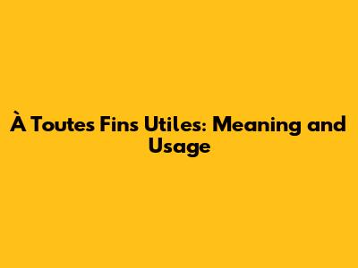 À Toutes Fins Utiles: Meaning And Usage