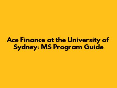 Ace Finance At The University Of Sydney: MS Program Guide