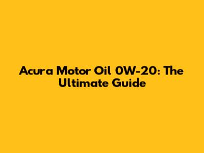 Acura Motor Oil 0W-20: The Ultimate Guide