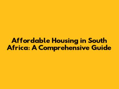 Affordable Housing In South Africa: A Comprehensive Guide