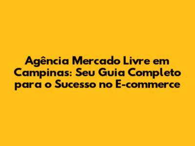 Agência Mercado Livre Em Campinas: Guia Completo Para O Sucesso