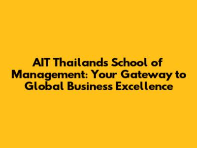 AIT Thailand's School Of Management: Your Gateway