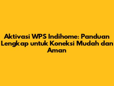 Aktivasi WPS Indihome: Panduan Mudah Untuk Koneksi Aman