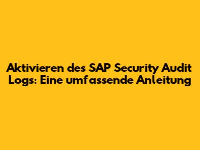 Aktivieren Des SAP Security Audit Logs: Eine Umfassende Anleitung