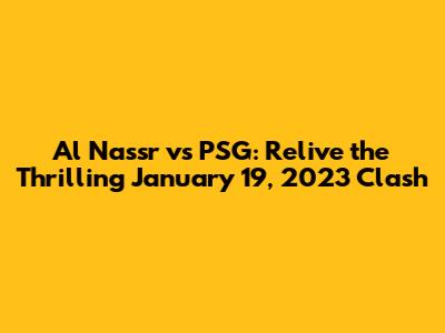 Hey guys! Let's dive deep into that epic Al Nassr vs PSG match from January 19, 2023. If you're a football fanatic like me, you probably remember the buzz around this game. It wasn't just another friendly; it was a clash of titans featuring some of the biggest names in the sport. We're talking about a face-off that had fans on the edge of their seats, and we're here to break down everything that made it so memorable. From the final score to the standout moments, we've got you covered. Get ready to relive the excitement and maybe even discover some details you might have missed! The anticipation leading up to the Al Nassr vs PSG game was palpable. Everyone was eager to see how these star-studded teams would match up. Pre-match discussions were all about the potential fireworks on the field. It was more than just a game; it was a spectacle. The match took place in Riyadh, Saudi Arabia, adding an extra layer of excitement for the local fans who were thrilled to witness such a high-profile event on their home turf. The atmosphere was electric, and the stadium was packed with supporters from both sides, creating a vibrant and energetic environment. This game wasn't just about the score; it was about the experience and the thrill of watching top-tier football. So, buckle up as we explore the highlights and key moments that defined this unforgettable encounter.