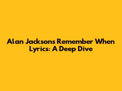 Alan Jackson's 'Remember When' Lyrics: A Deep Dive