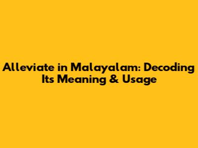 Alleviate In Malayalam: Decoding Its Meaning & Usage
