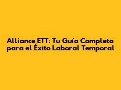 Alliance ETT: Tu Guía Completa Para El Éxito Laboral Temporal