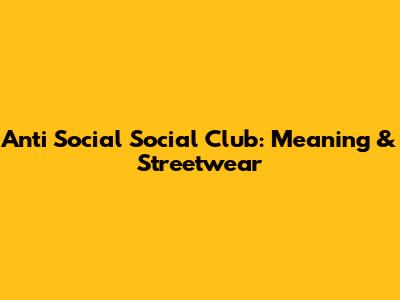 Anti Social Social Club: Meaning & Streetwear