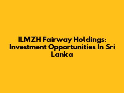 ILMZH Fairway Holdings: Investment Opportunities In Sri Lanka