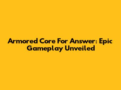 Armored Core For Answer: Epic Gameplay Unveiled
