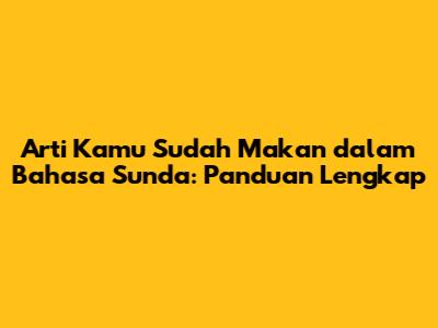 Arti 'Kamu Sudah Makan' Dalam Bahasa Sunda: Panduan Lengkap