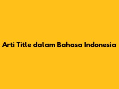 Arti 'Title' Dalam Bahasa Indonesia