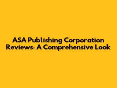 ASA Publishing Corporation: Unveiling Reviews & Insights