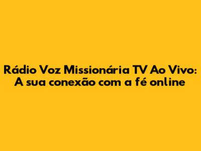 Assistir Rádio Voz Missionária TV Ao Vivo Online
