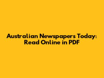 Australian Newspapers Today: Read Online In PDF