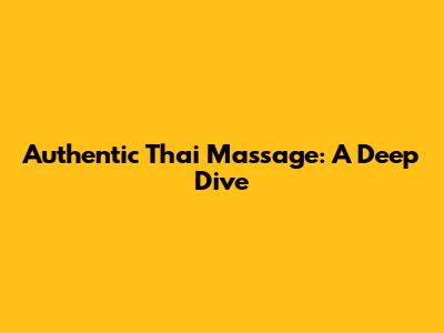 Authentic Thai Massage: A Deep Dive