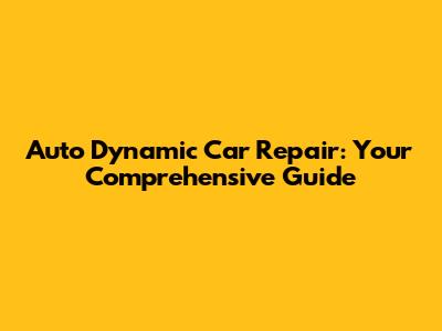 Auto Dynamic Car Repair: Your Comprehensive Guide